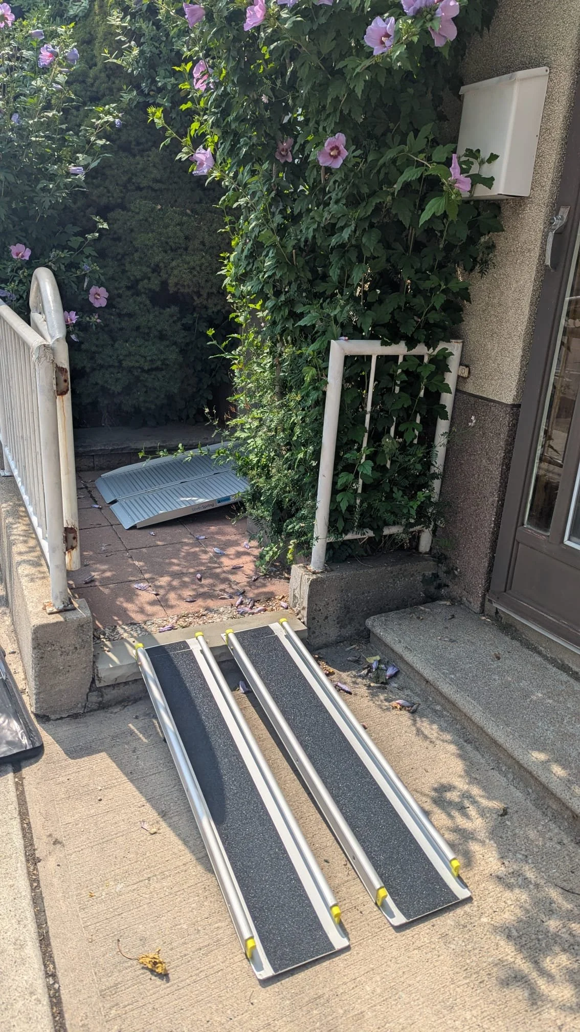 There are two small steps to access the clinic (pictured below). We have portable ramps to help eliminate this barrier. If you have enhanced mobility needs and require physical assistance to enter the clinic, please let Joanna know in advance. She is trained help you ascend and descend the steps safely with or without a gait aid/mobility device.